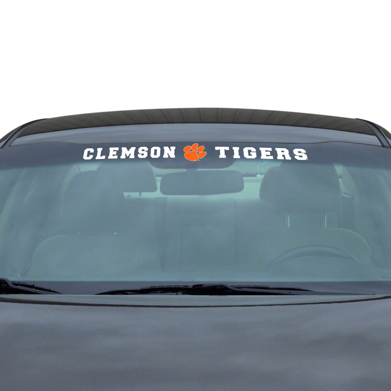 Windshield Decal with Clemson University Logo; White (Universal; Some Adaptation May Be Required)