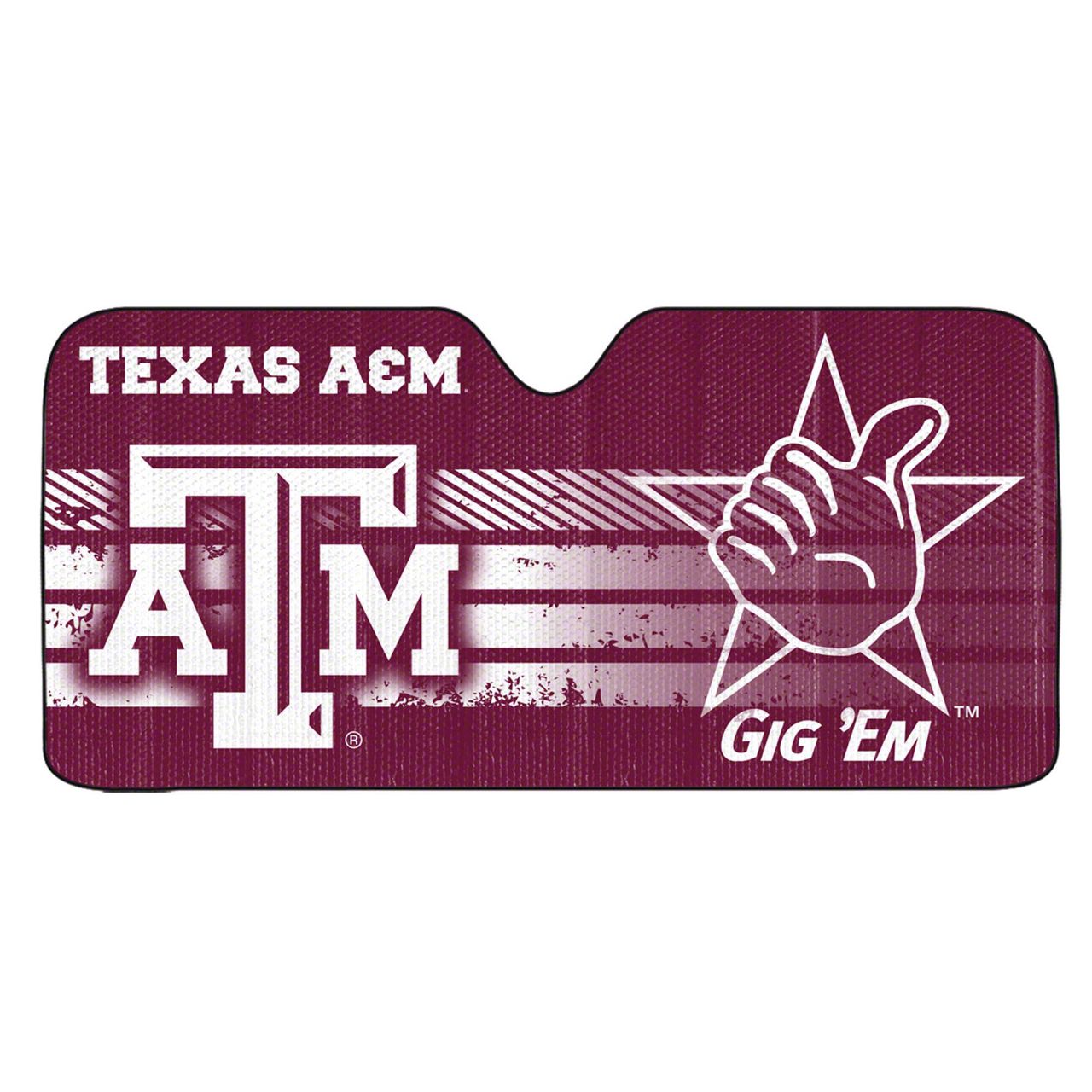 Protective Texas A&M Sun Shade. This Windshield Sun Shade with the Texas A&M University Logo provides effective sun protection for your vehicle’s interior while proudly displaying your Aggie spirit. Designed for maximum UV ray blocking, this shade shields your dashboard and seats from damaging sun exposure.