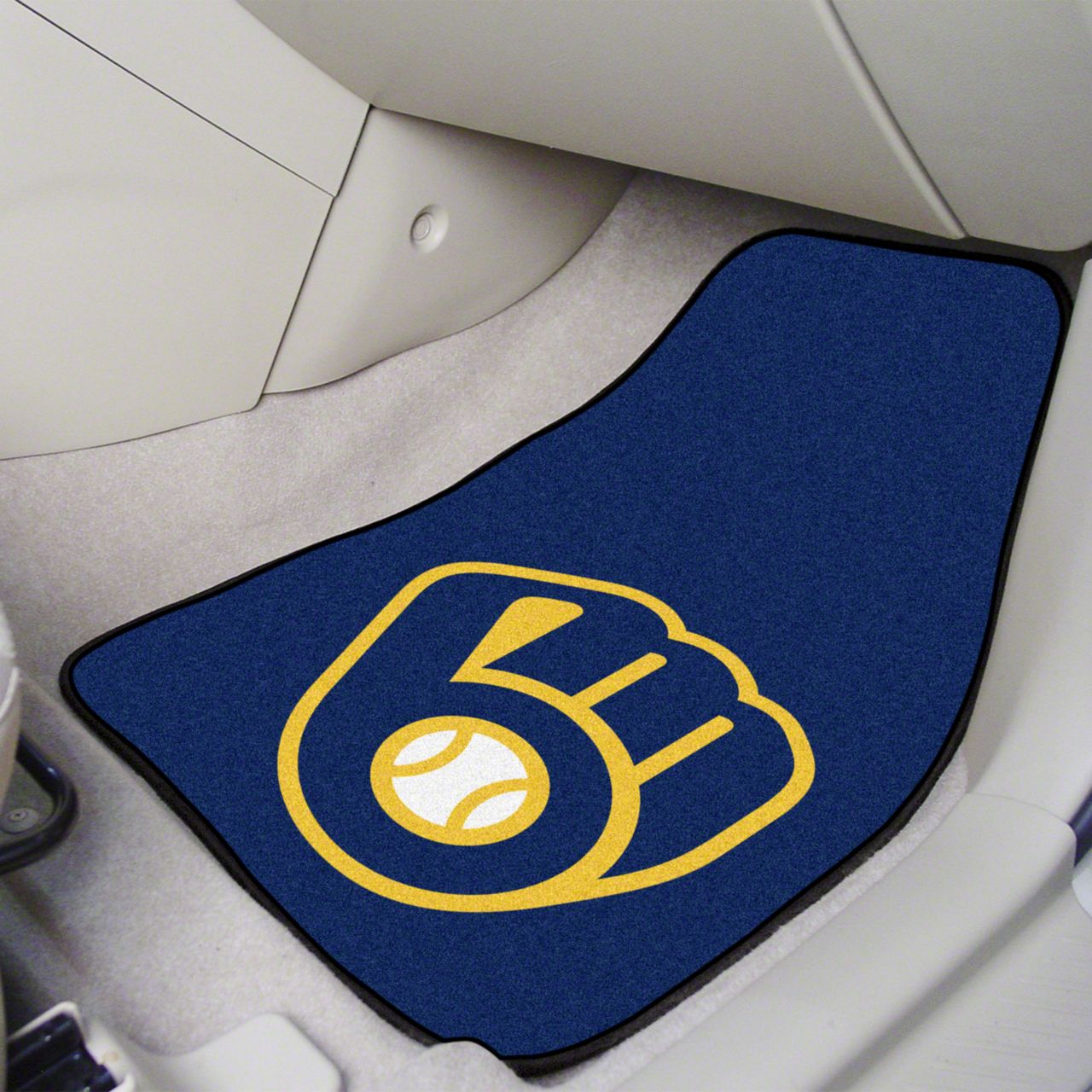 Description. Front Car Mats; 2-Pc Carpet Car Mat Set; Mlb; Milwaukee Brewers; 17"X27"