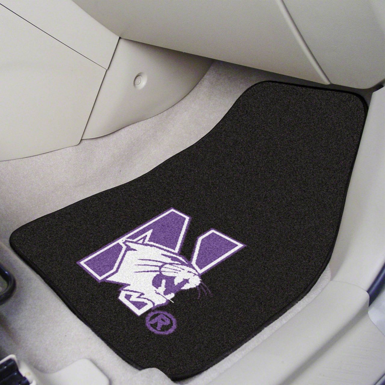 Description. Front Car Mats; 2-Pc Carpet Car Mat Set; Northwestern University; 17"X27"