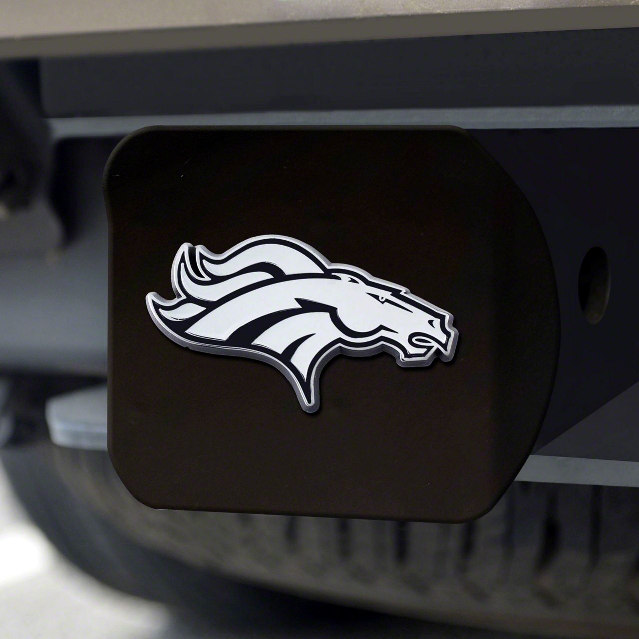Description. Automotive Accessory; Hitch Cover; Black; Nfl; Denver Broncos ; 3.4"X4"