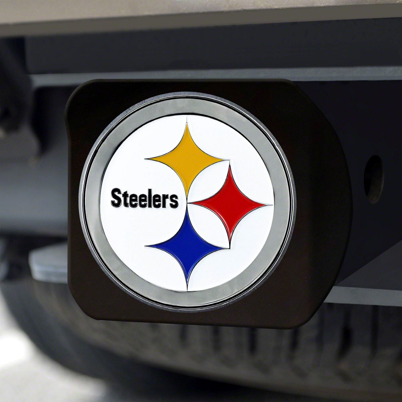 Description. Automotive Accessory; Color Hitch Cover; Black; Nfl; Pittsburgh Steelers ; 3.4"X4"