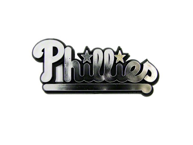 Stylish Team Pride. The Philadelphia Phillies Molded Emblem is a stylish way to showcase your team pride. Featuring a polished chrome finish and measuring 3.25x3.25 inches, this emblem is designed to make a bold statement. It displays the Major League Baseball logo, making it a perfect accessory for fans who want to support their team in style.