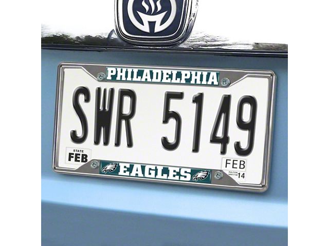 Application. This License Plate Frame with Philadelphia Eagles Logo; Green is a universal fitment product; some adaptation may be required depending on your vehicle’s make and model.