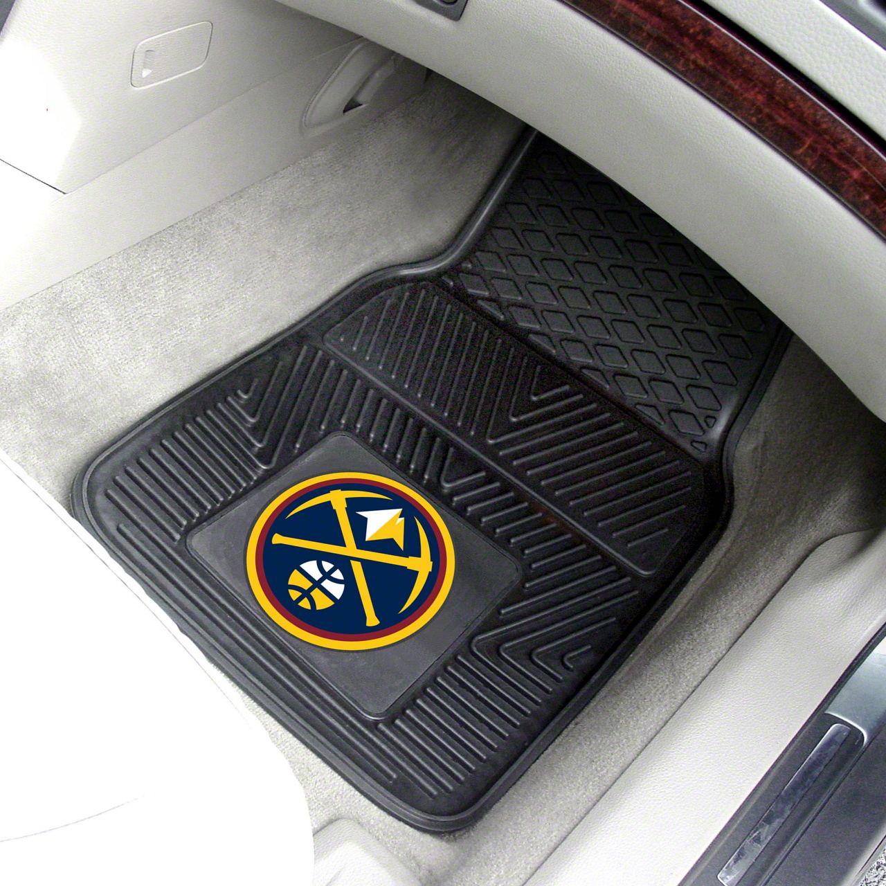 Description. Front Car Mats; 2-Pc Vinyl Car Mat Set; Nba; Denver Nuggets; 17"X27"