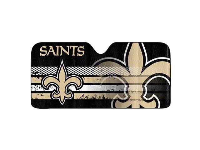 The Black and Gold. Made for a universal fit, this Windshield Sun Shade comes in a matte black finish and has the logo and design of the New Orleans Saints. Featuring their classic black and gold fleur-de-lis, you can show your team pride whenever your ride’s parked and keep the sun and heat away while you’re doing it!