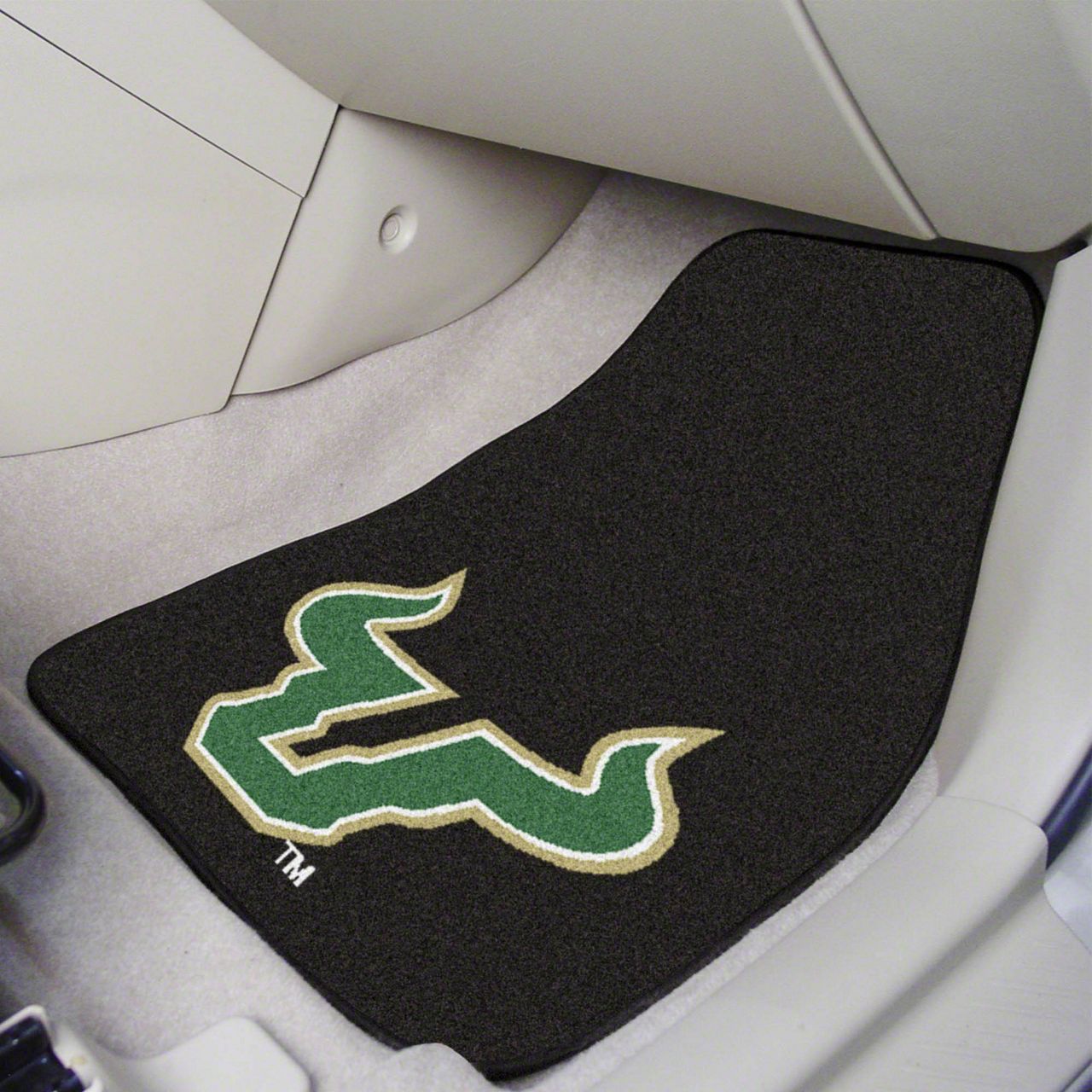 Description. Front Car Mats; 2-Pc Carpet Car Mat Set; University Of South Florida; 17"X27"