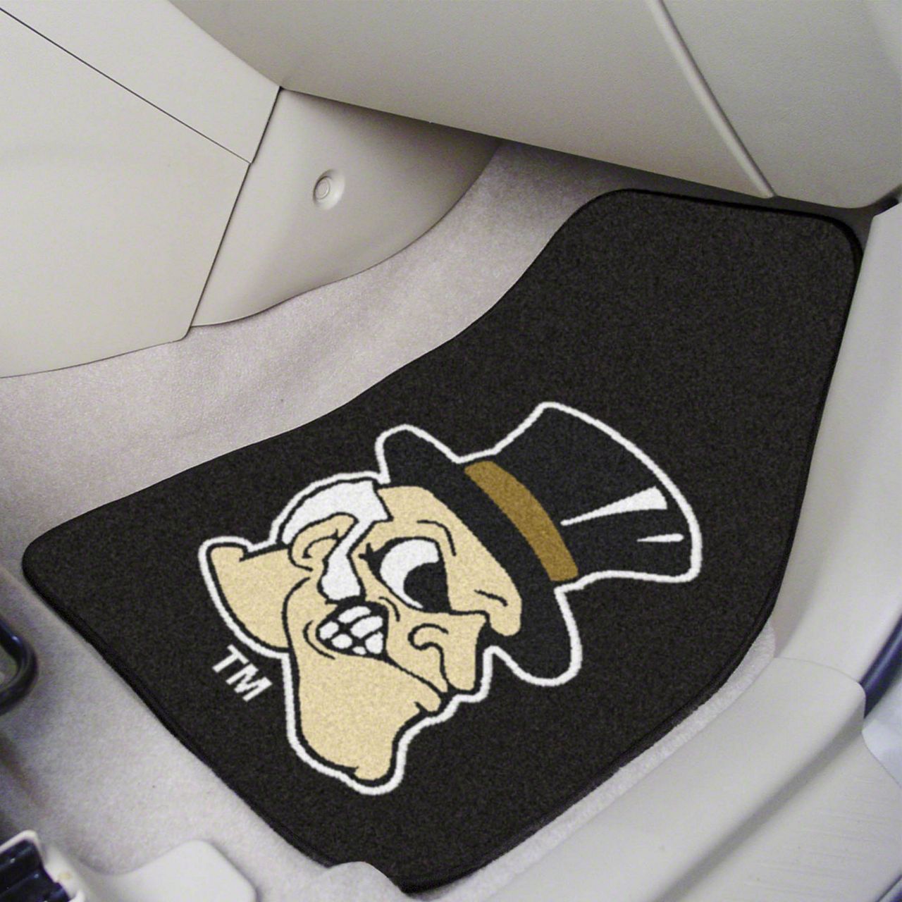 Description. Front Car Mats; 2-Pc Carpet Car Mat Set; Wake Forest University; 17"X27"