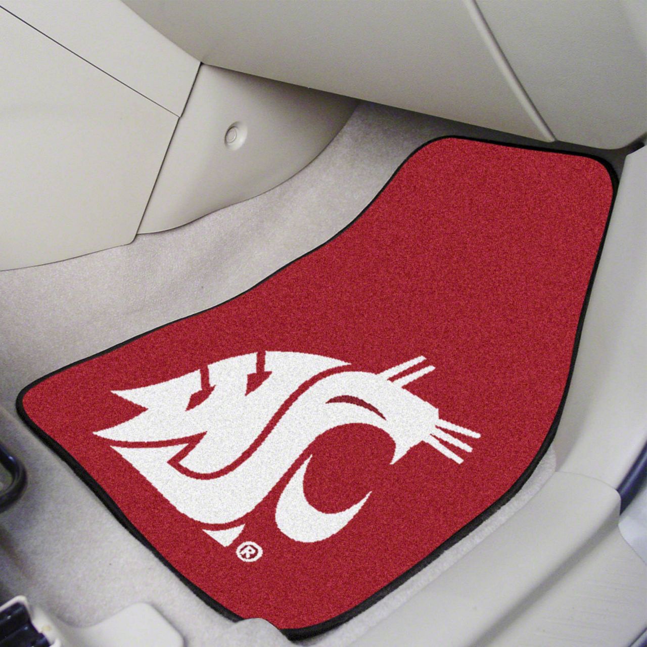 Description. Front Car Mats; 2-Pc Carpet Car Mat Set; Washington State University; 17"X27"