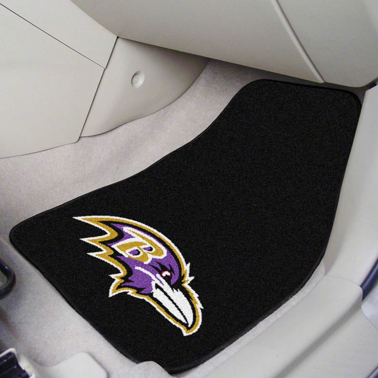 Description. Front Car Mats; 2-Pc Carpet Car Mat Set; Nfl; Baltimore Ravens; 17"X27"