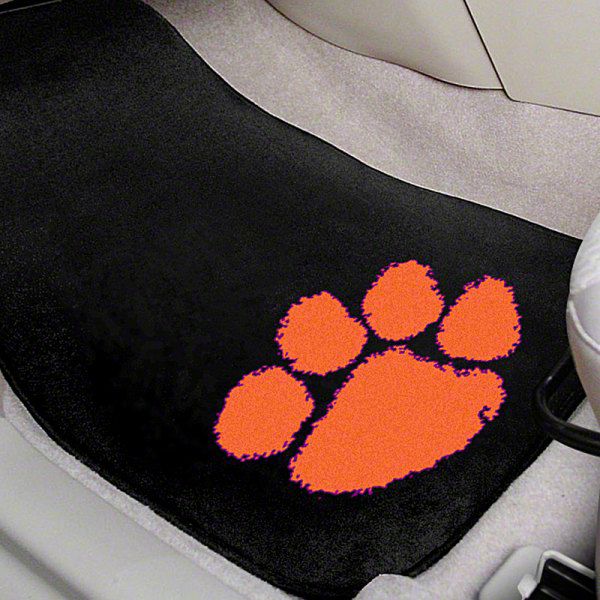 Description. Front Car Mats; 2-Pc Carpet Car Mat Set; Clemson University; 17"X27"