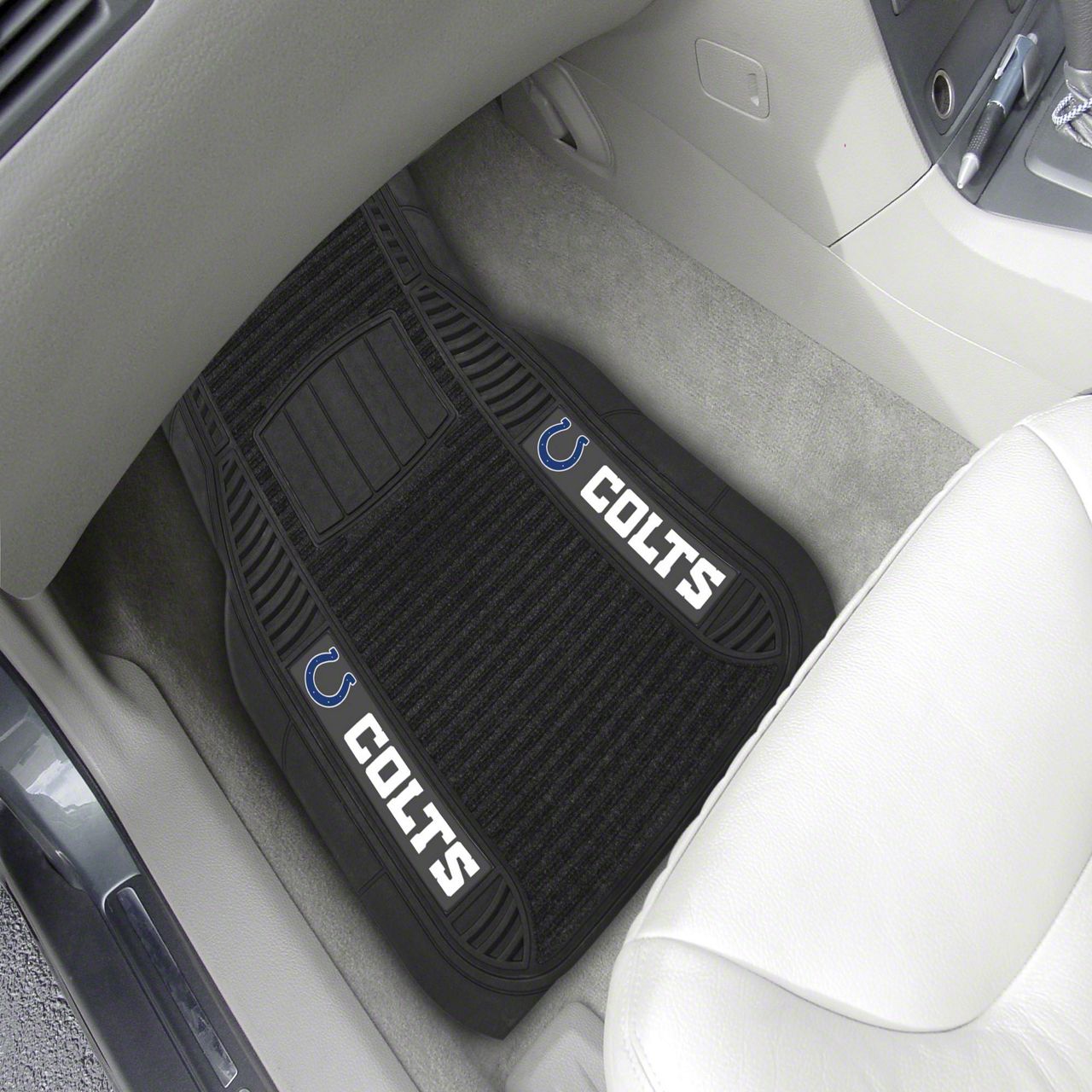 Description. Front Car Mats; 2-Pc Deluxe Car Mat Set; Nfl; Indianapolis Colts; 21"X27"