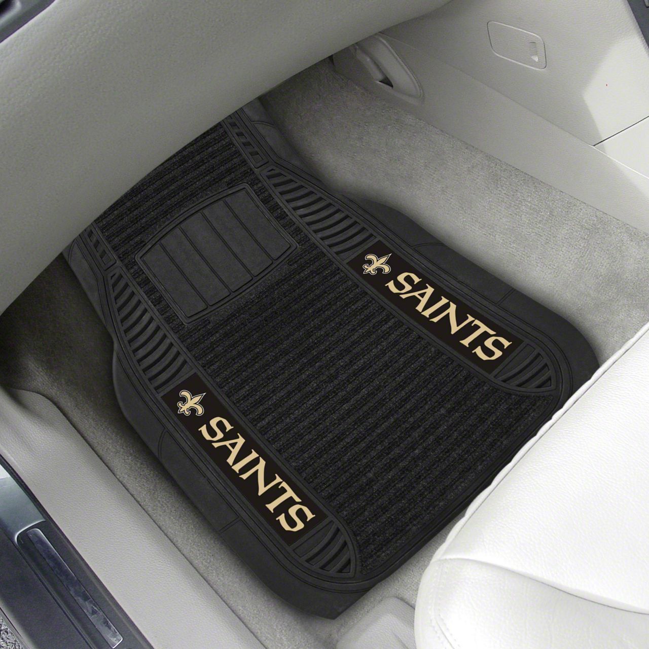 Description. Front Car Mats; 2-Pc Deluxe Car Mat Set; Nfl; New Orleans Saints; 21"X27"