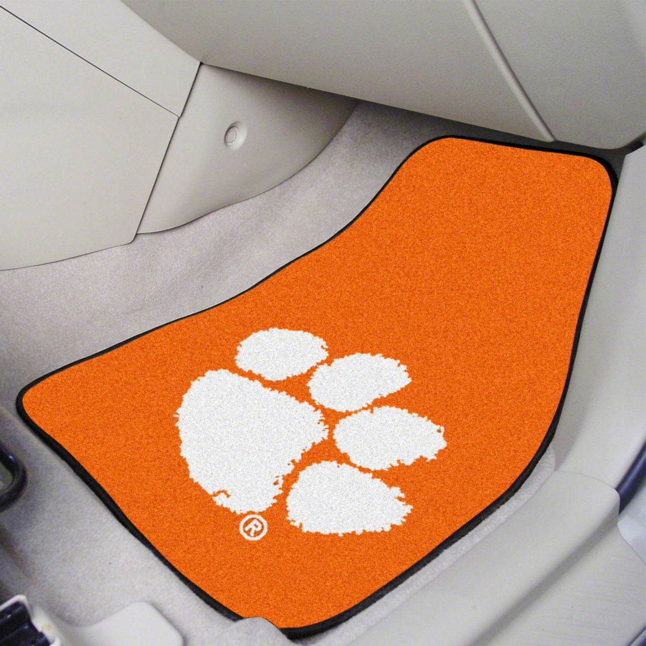 Description. Front Car Mats; 2-Pc Carpet Car Mat Set; Clemson University; 17"X27"