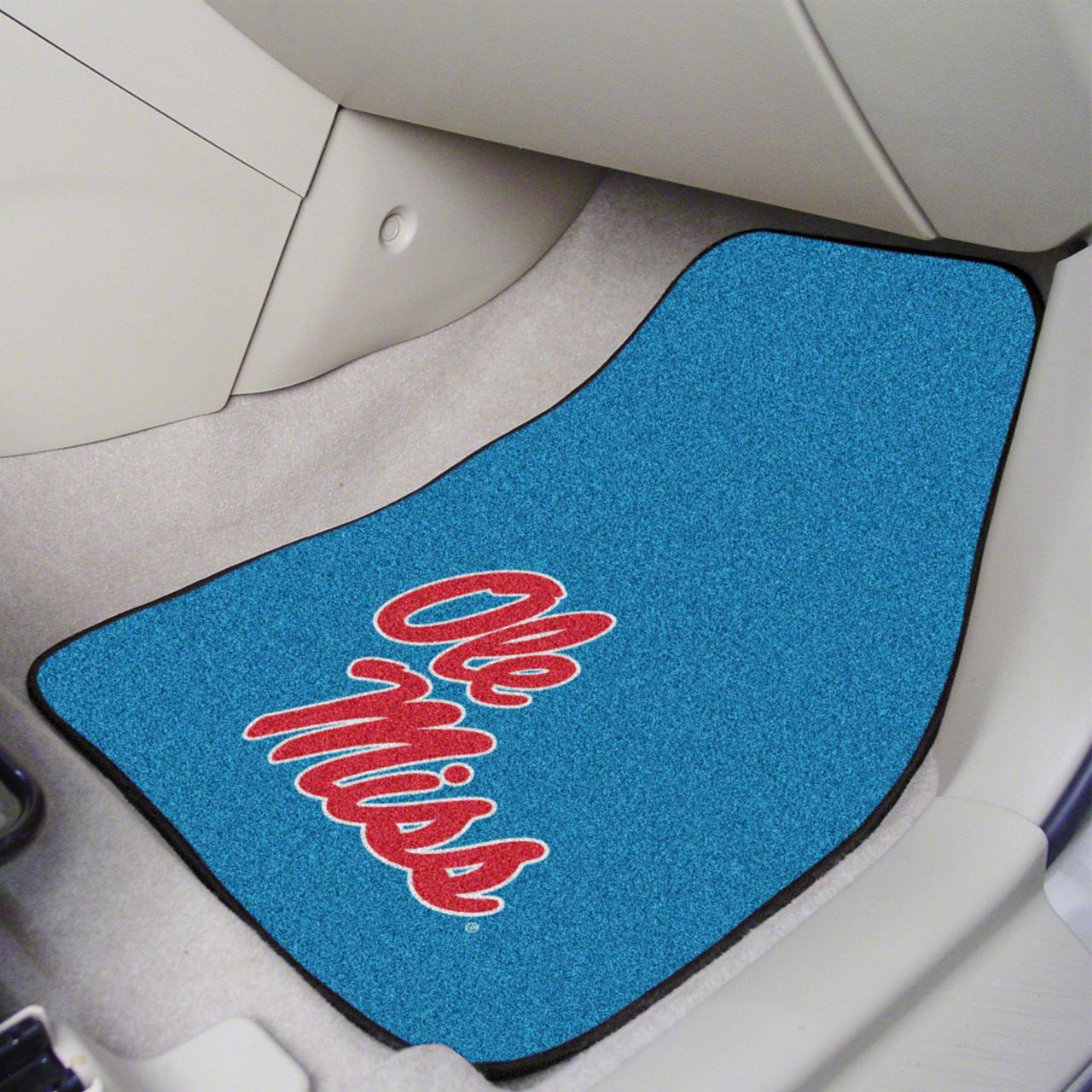 Description. Front Car Mats; 2-Pc Carpet Car Mat Set; University Of Mississippi (Ole Miss); 17"X27"