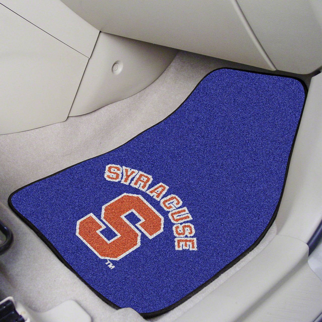 Description. Front Car Mats; 2-Pc Carpet Car Mat Set; Syracuse University; 17"X27"