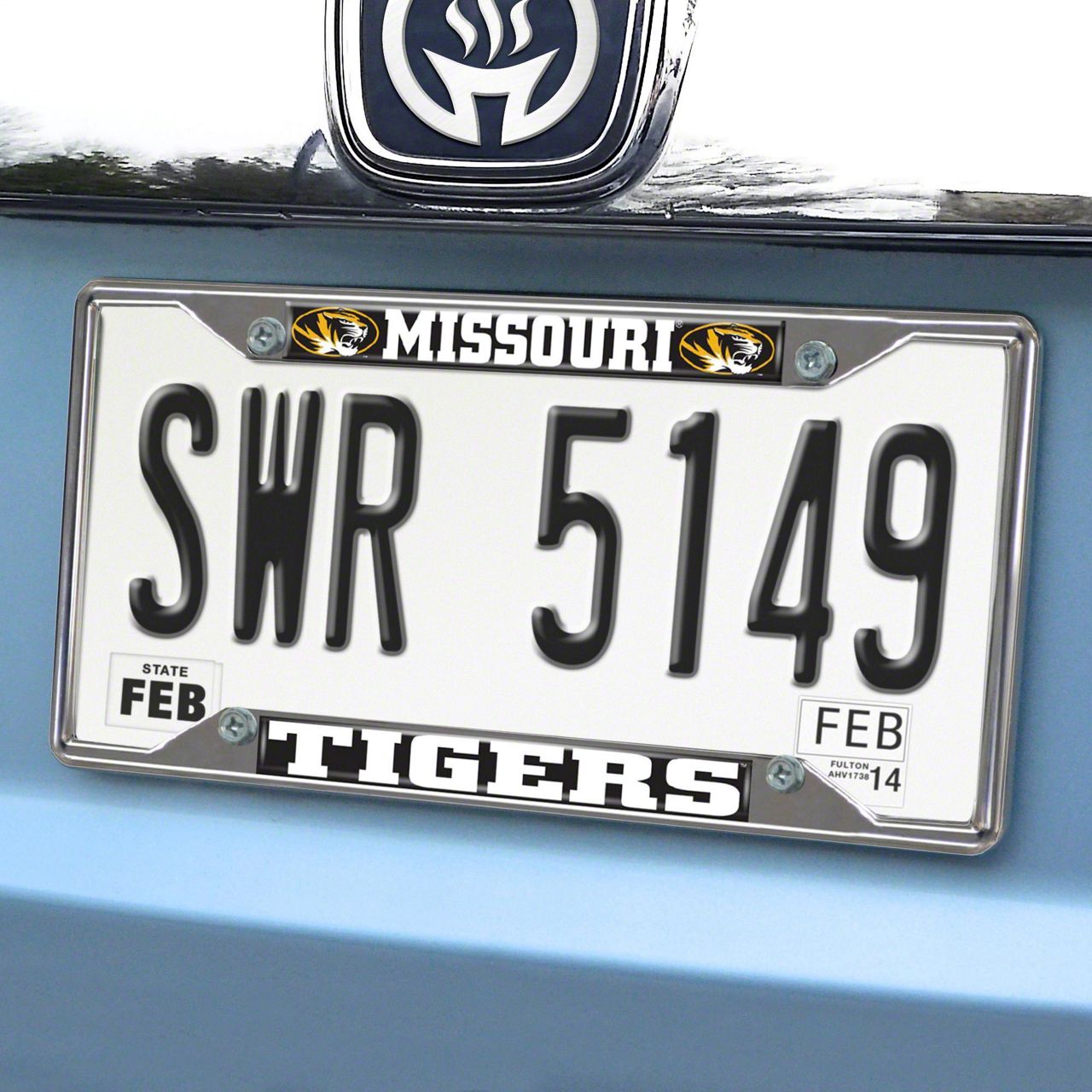 License Plate Frame with University of Missouri Logo; Chrome (Universal; Some Adaptation May Be Required)