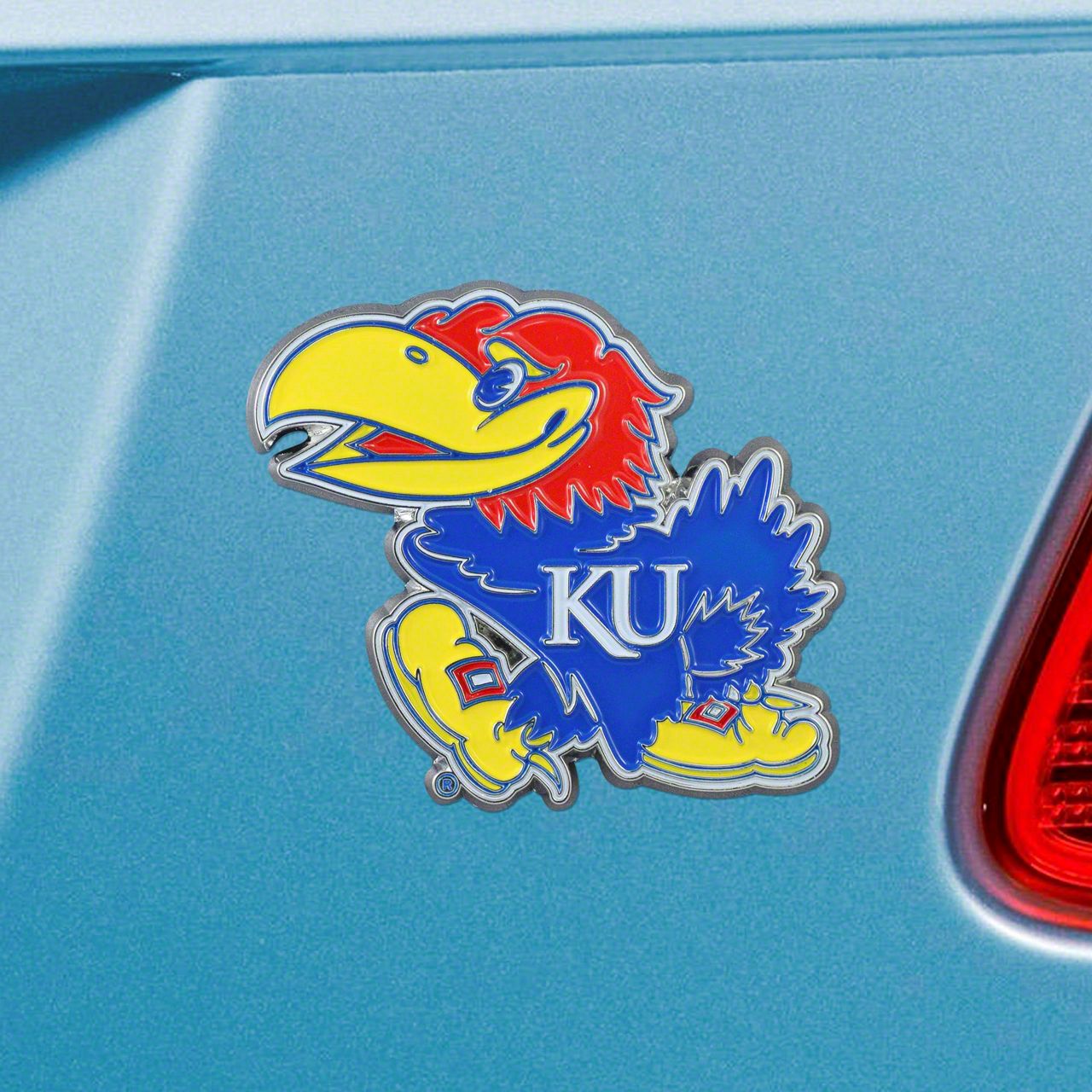 Style and Quality. Show off your love for the University of Kansas with this beautifully designed Emblem. The emblem features the official Jayhawks logo, making it the perfect accessory for any fan. Made with high-quality chrome, it is not only durable but also adds a sleek and polished look to your vehicle. The molded 3D team logo is a standout feature that will catch the eye of fellow Kansas fans without fading or deteriorating over time. You can be confident that the University of Kansas Emblem will remain in great condition for years to come.