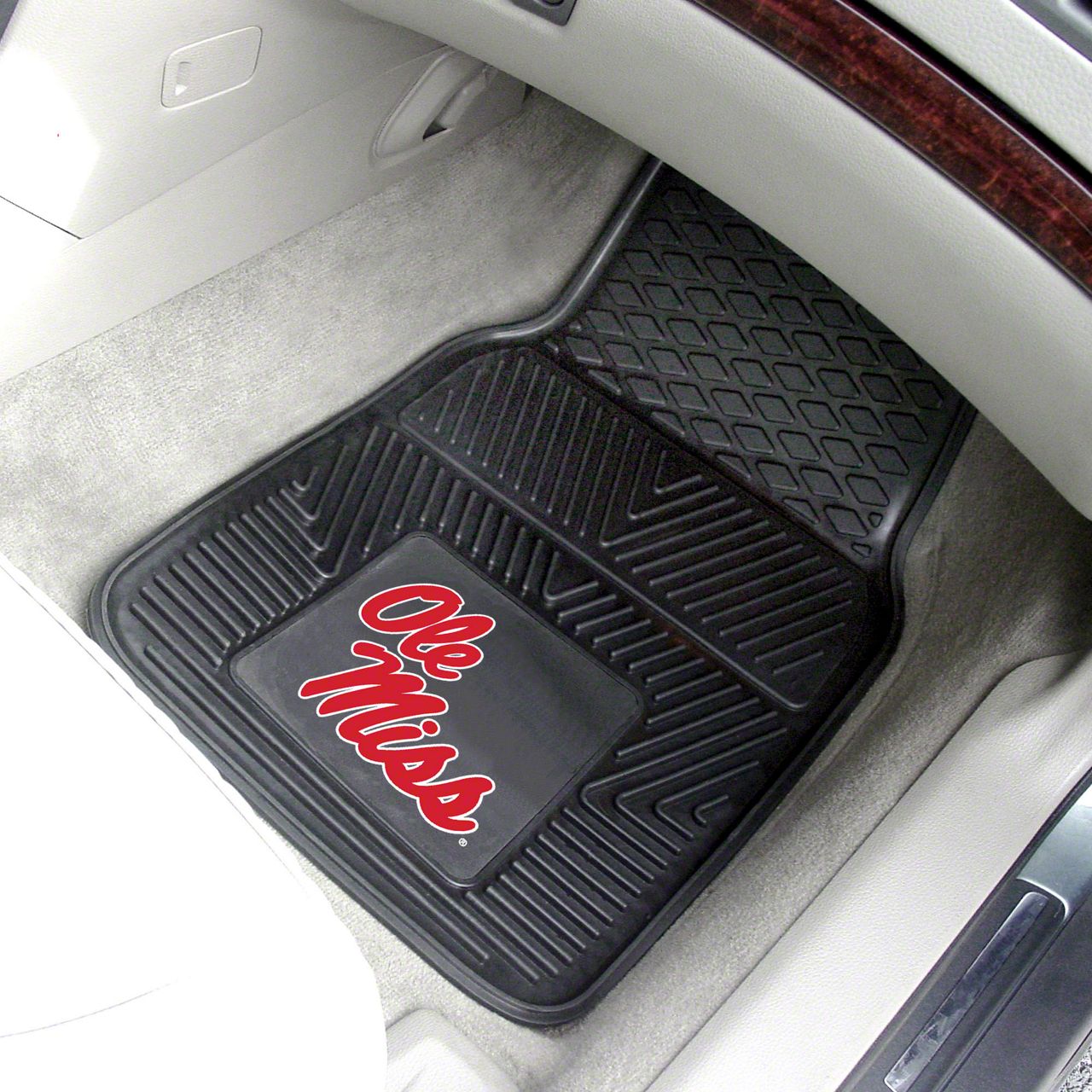 Description. Front Car Mats; 2-Pc Vinyl Car Mat Set; University Of Mississippi (Ole Miss); 17"X27"