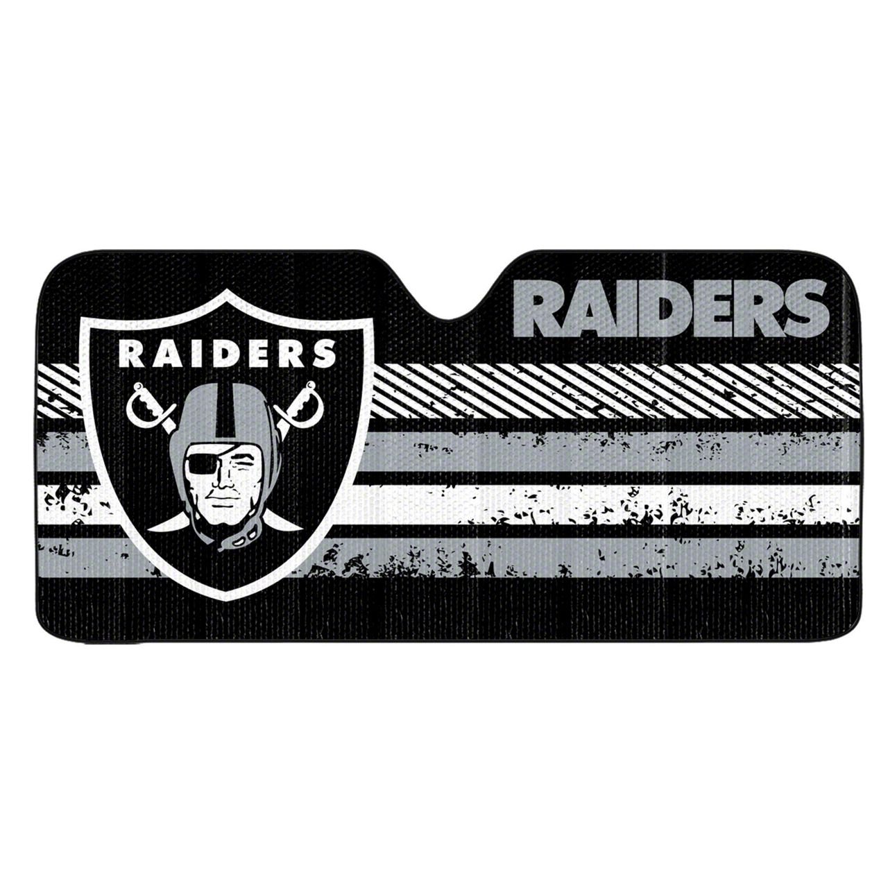 Application. This Windshield Sun Shade with Las Vegas Raiders Logo offers universal fitment.