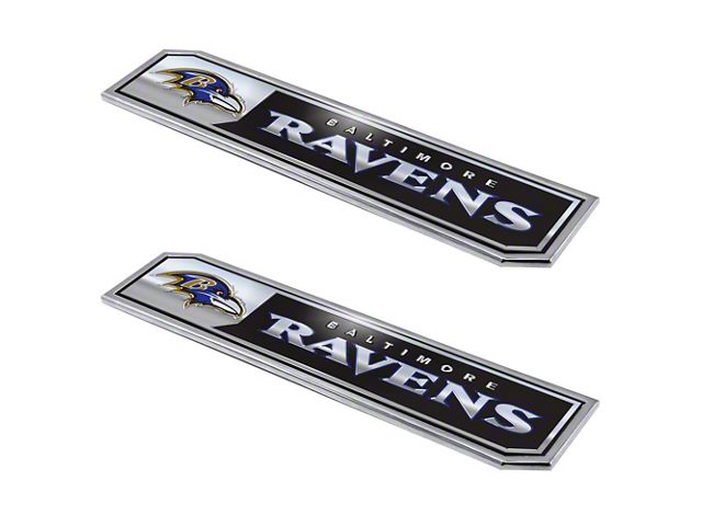 Show Team Pride. The Baltimore Ravens Embossed Emblems in black feature the iconic team logo, making them a great addition to your vehicle. These emblems are sold in packs of 2 and are the perfect size for placement on fenders or the rear of your vehicle.