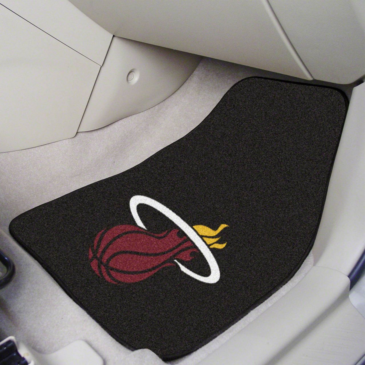 Description. Front Car Mats; 2-Pc Carpet Car Mat Set; Nba; Miami Heat; 17"X27"