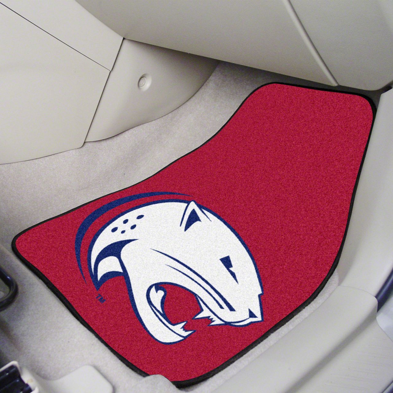 Description. Front Car Mats; 2-Pc Carpet Car Mat Set; University Of South Alabama; 17"X27"