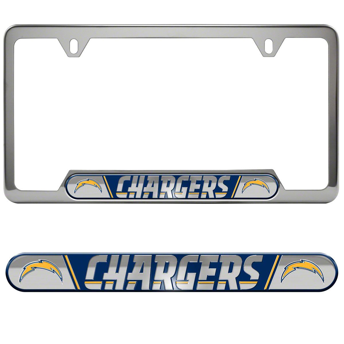 Application. With minor adaptation work, the Embossed License Plate Frame with Los Angeles Chargers Logo offers universal fitment.