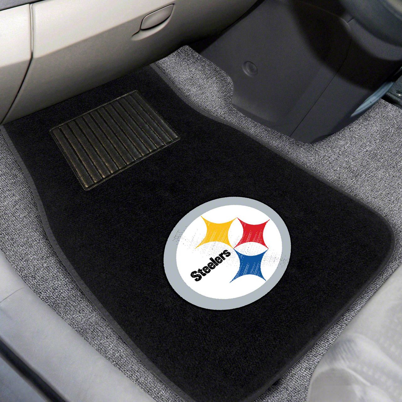 Description. Front Car Mats; 2-Pc Embroidered Car Mat Set; Nfl; Pittsburgh Steelers; 17"X25.5"