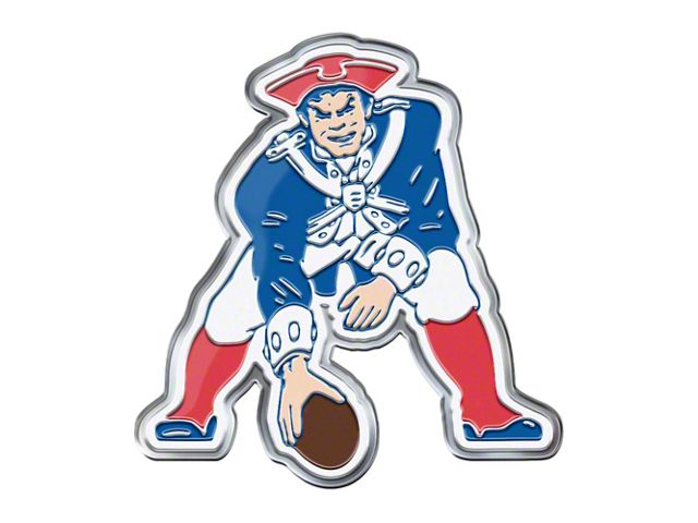 Plated Metal Emblem. Show off your team spirit with this New England Patriots Embossed Emblem. Constructed from top-class plated metal, it's durable and designed to withstand car washes and inclement weather, preserving its vibrant blue and red colors. The pre-applied strong adhesive ensures it securely affixes to your vehicle, yet can be removed without leaving residues.