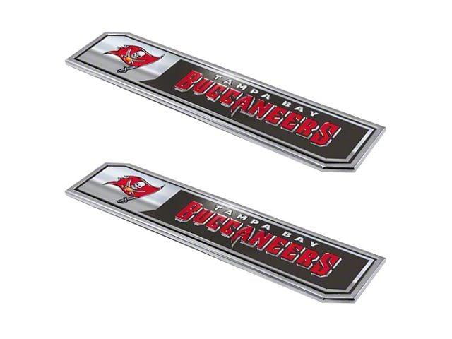 Sporty NFL Styling. Show of your team pride as you cruise the road with these Tampa Bay Buccaneers Embossed Emblems; Black styling your vehicle's exterior. Sporting a strong metal and chrome design, it is sure to hold out even in wet or windy conditions. The 3D molded logo are made durable and will not fade for the years to come.