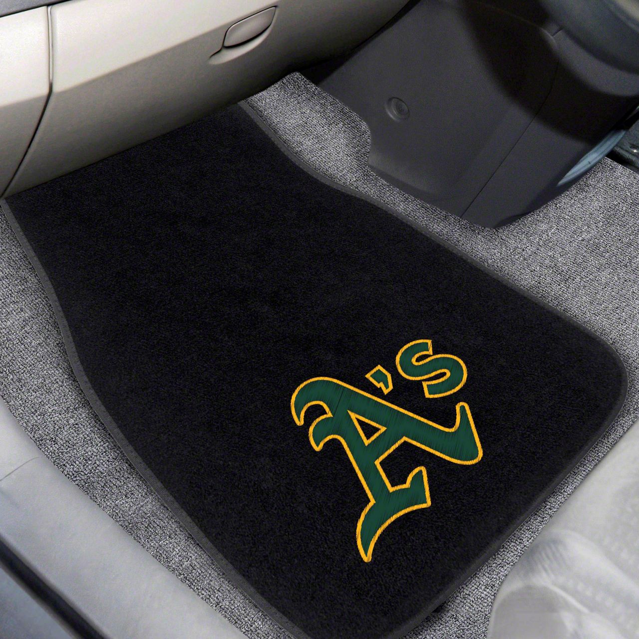 Description. Front Car Mats; 2-Pc Embroidered Car Mat Set; Mlb; Oakland Athletics; 17"X25.5"