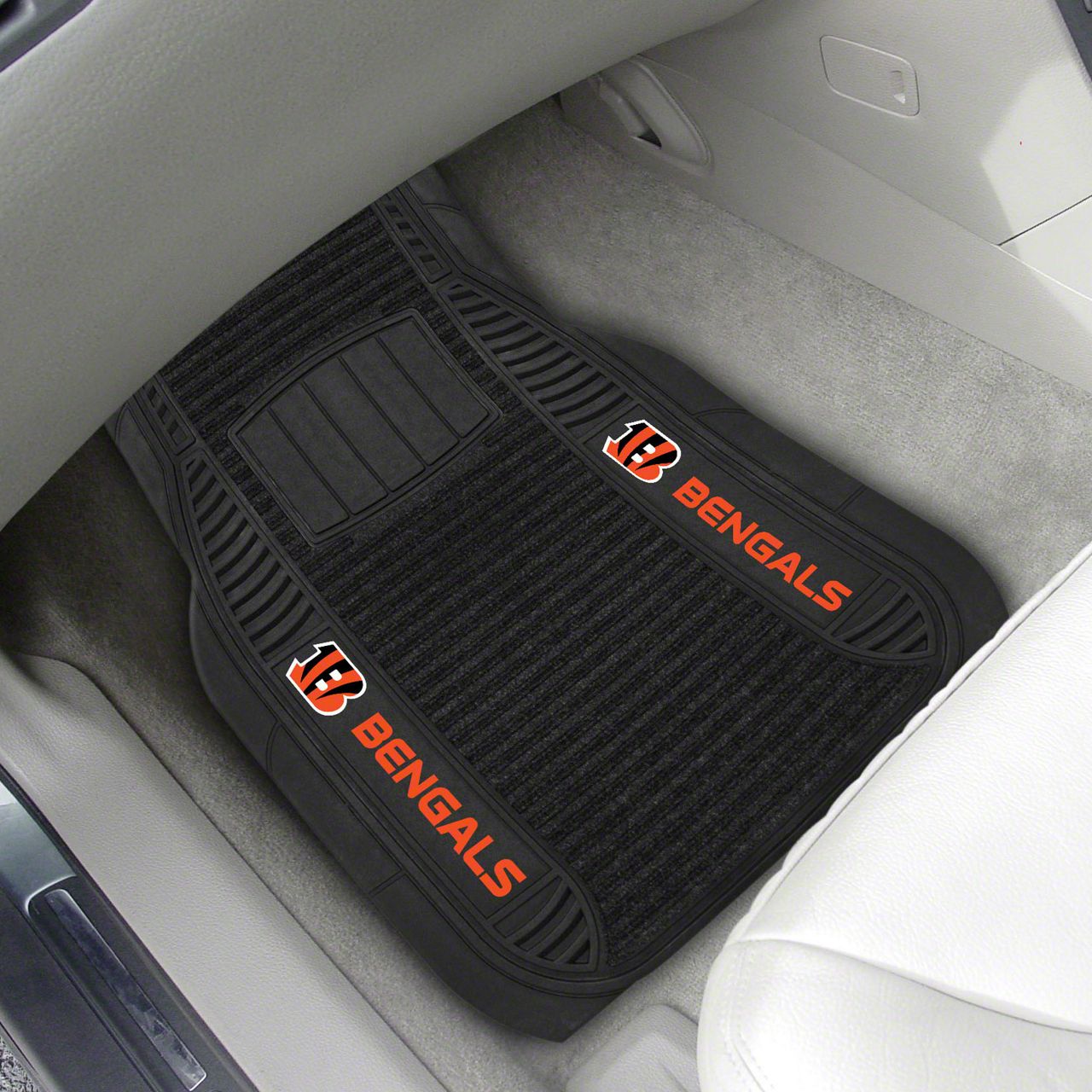 Description. Front Car Mats; 2-Pc Deluxe Car Mat Set; Nfl; Cincinnati Bengals; 21"X27"