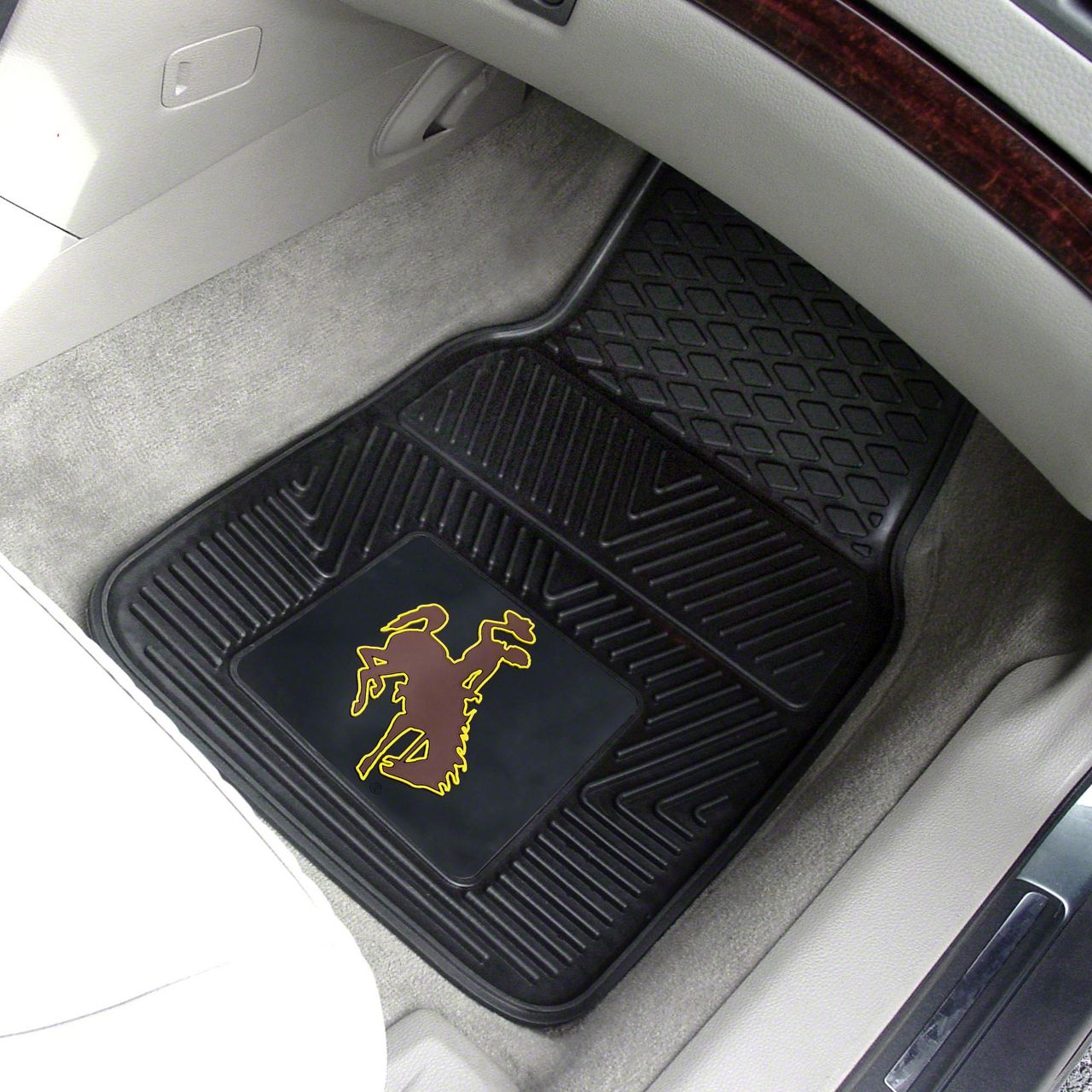 Stylish and Protective Floor Coverage. These Floor Mats with a University of Wyoming logo are designed for universal fit, offering a stylish way to protect your vehicle’s stock upholstery and flooring. Sized at 17x27 inches, these mats provide full front coverage, ensuring durability while adding a personalized touch to your interior.