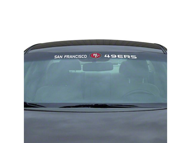 Tough Made. Show your San Francisco pride with this Windshield Decal with the San Francisco 49ers Logo. It's made of tough vinyl and is specially designed to stick to curved windshields. Although some customization is required, it is a universal decal that can be used on most vehicles. The full-color team logo and wordmark are prominently displayed on the decal, which let everyone knows who you're supporting.