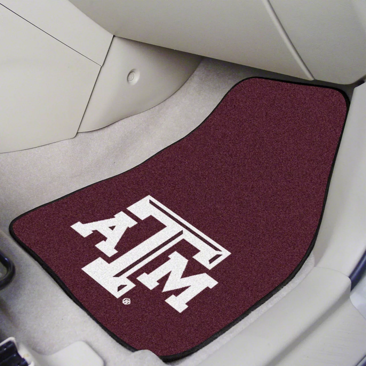 Description. Front Car Mats; 2-Pc Carpet Car Mat Set; Texas A&M University; 17"X27"