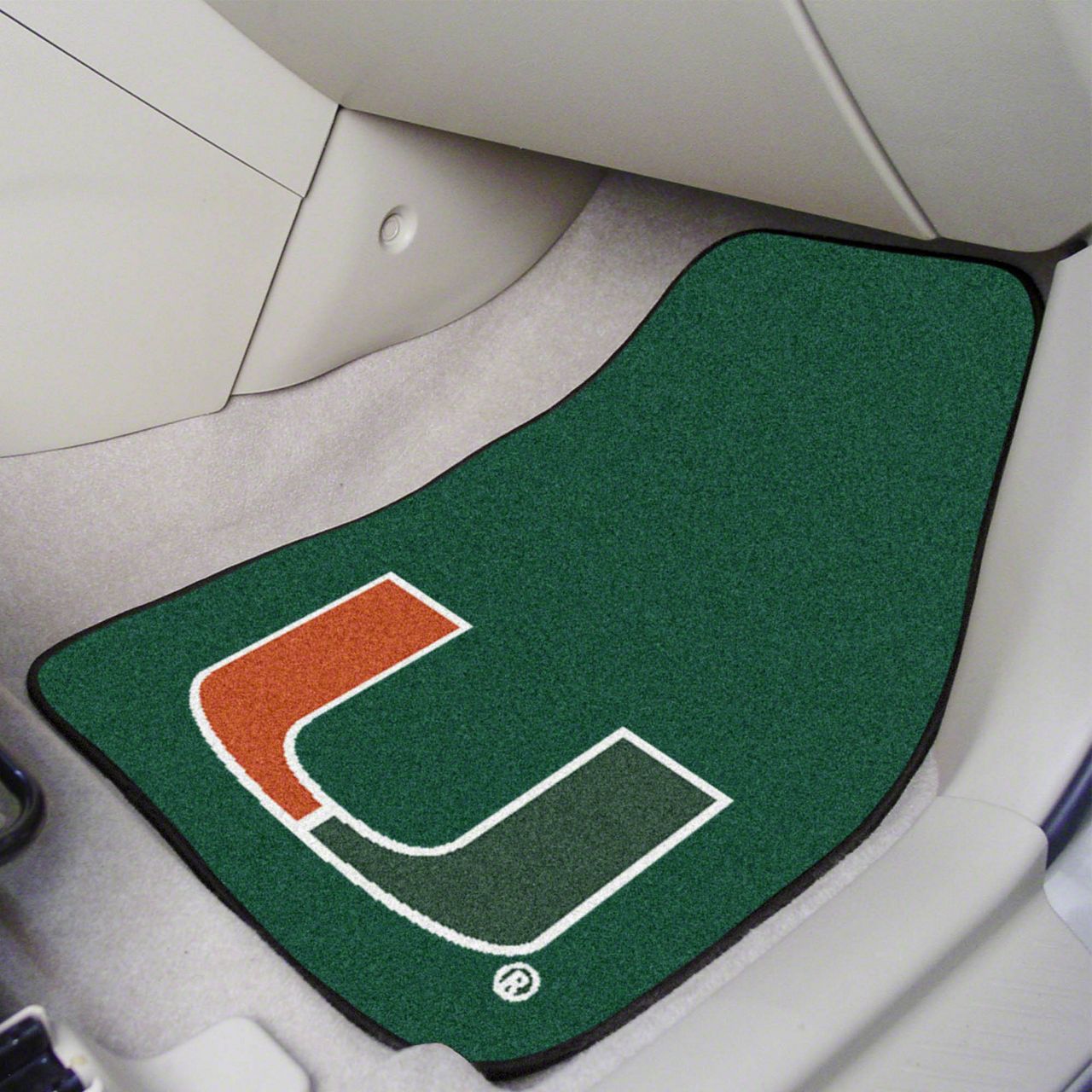 Description. Front Car Mats; 2-Pc Carpet Car Mat Set; University Of Miami; 17"X27"