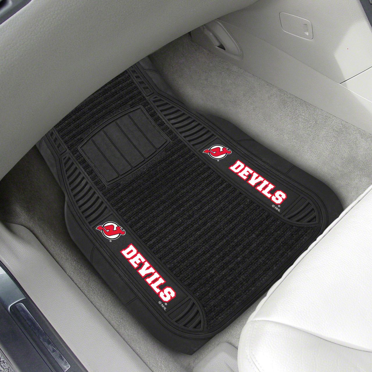 Description. Front Car Mats; 2-Pc Deluxe Car Mat Set; Nhl; New Jersey Devils; 21"X27"