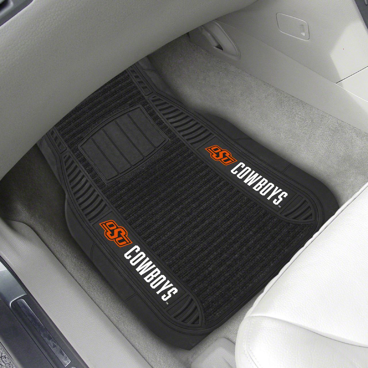 Description. Front Car Mats; 2-Pc Deluxe Car Mat Set; Oklahoma State University; 21"X27"