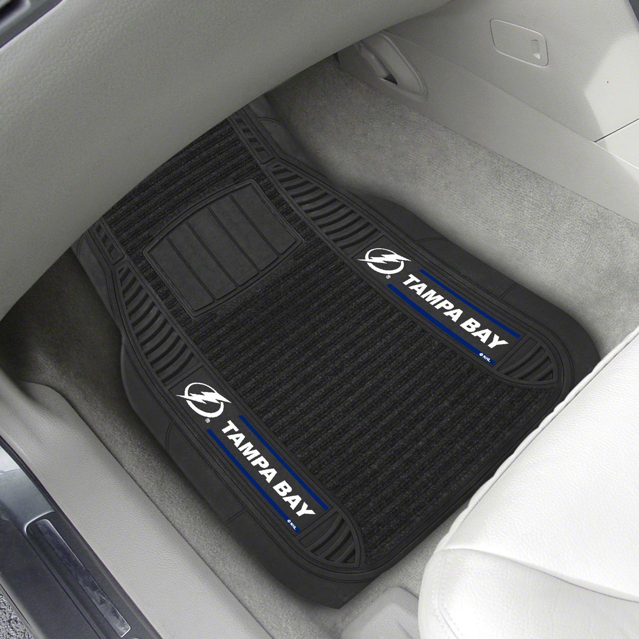 Description. Front Car Mats; 2-Pc Deluxe Car Mat Set; Nhl; Tampa Bay Lightning; 21"X27"