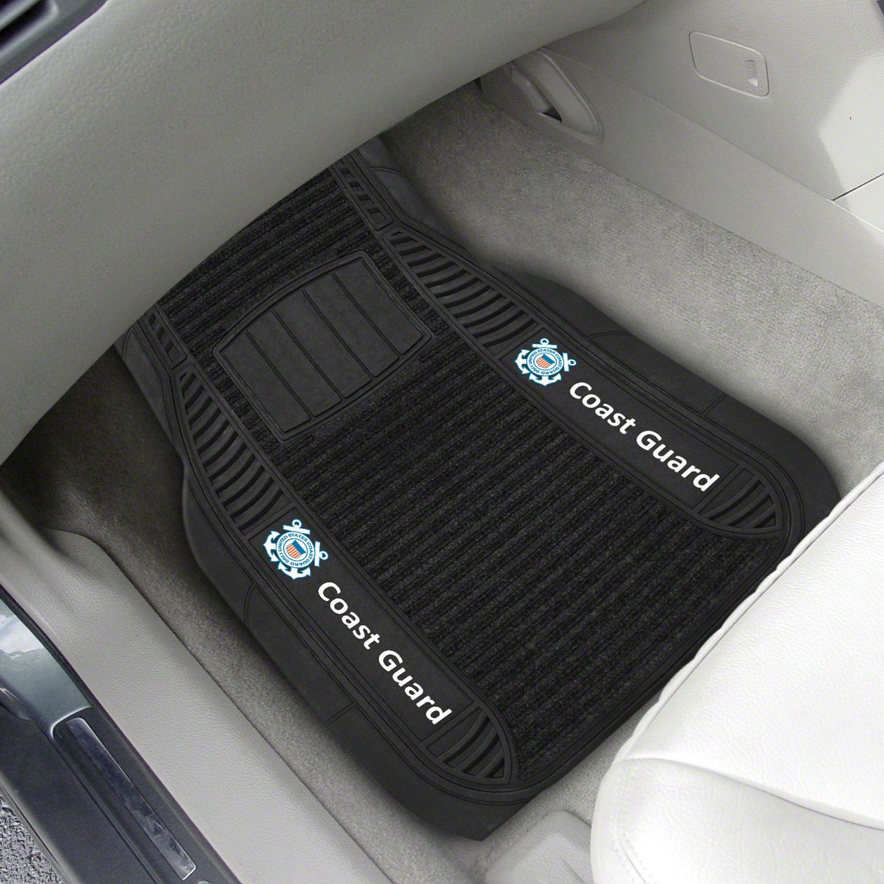 Description. Front Car Mats; 2-Pc Deluxe Car Mat Set; U.S. Coast Guard; 21"X27"