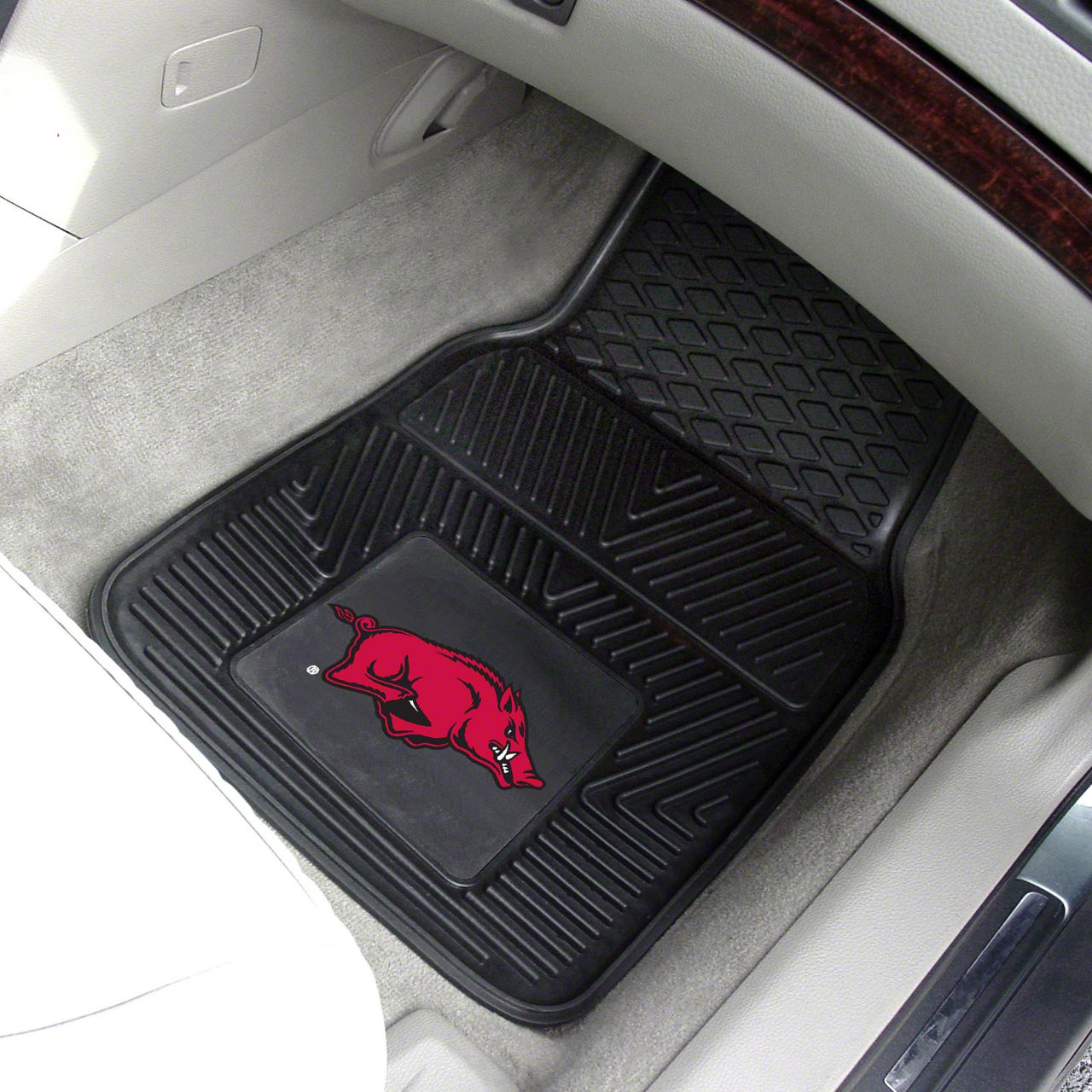 Description. Front Car Mats; 2-Pc Vinyl Car Mat Set; University Of Arkansas; 17"X27"