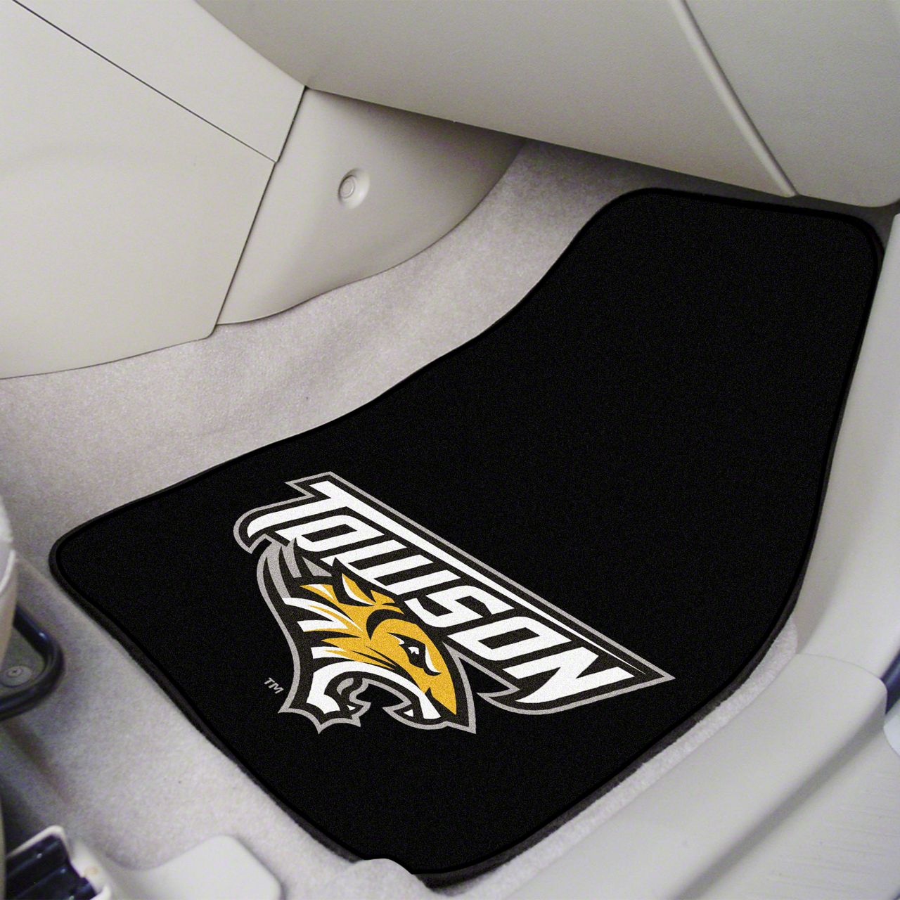 Description. Front Car Mats; 2-Pc Carpet Car Mat Set; Towson University; 17"X27"