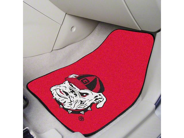 Stylish and Functional Floor Mats. The Carpet Front Floor Mats with University of Georgia Logo make a bold statement in your vehicle while providing essential interior protection. These mats are designed for easy cleaning and maintenance, whether you prefer a quick vacuuming or a more thorough machine wash.