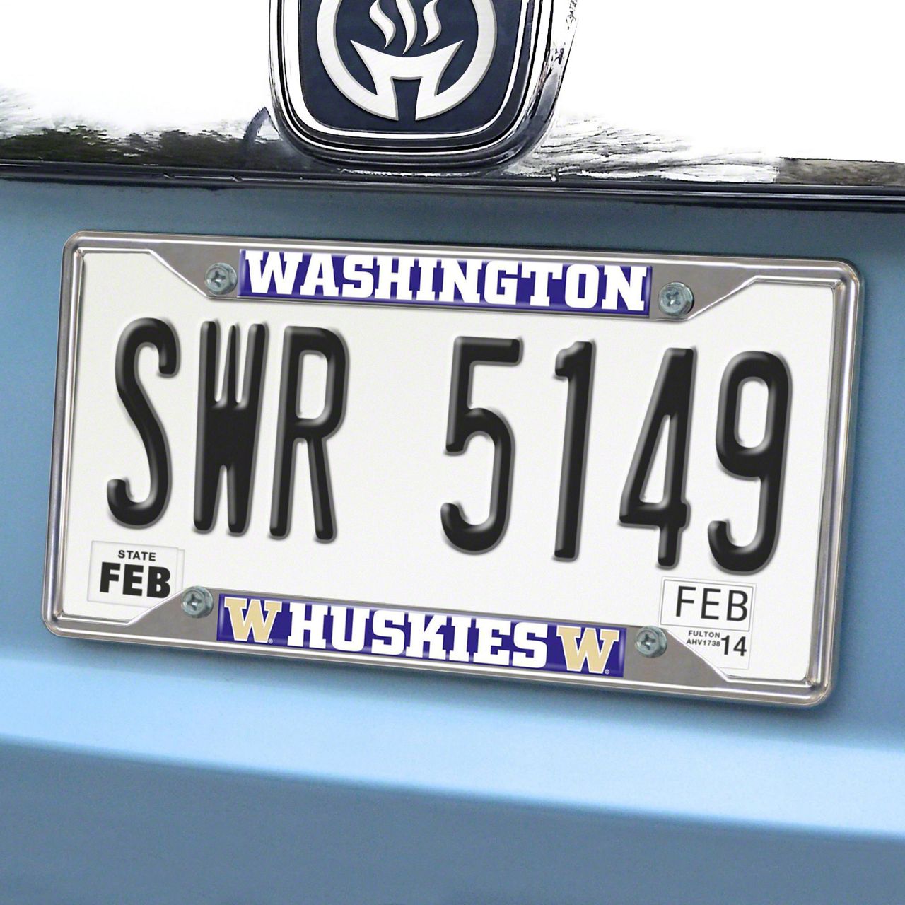 License Plate Frame with University of Washington Logo; Chrome (Universal; Some Adaptation May Be Required)