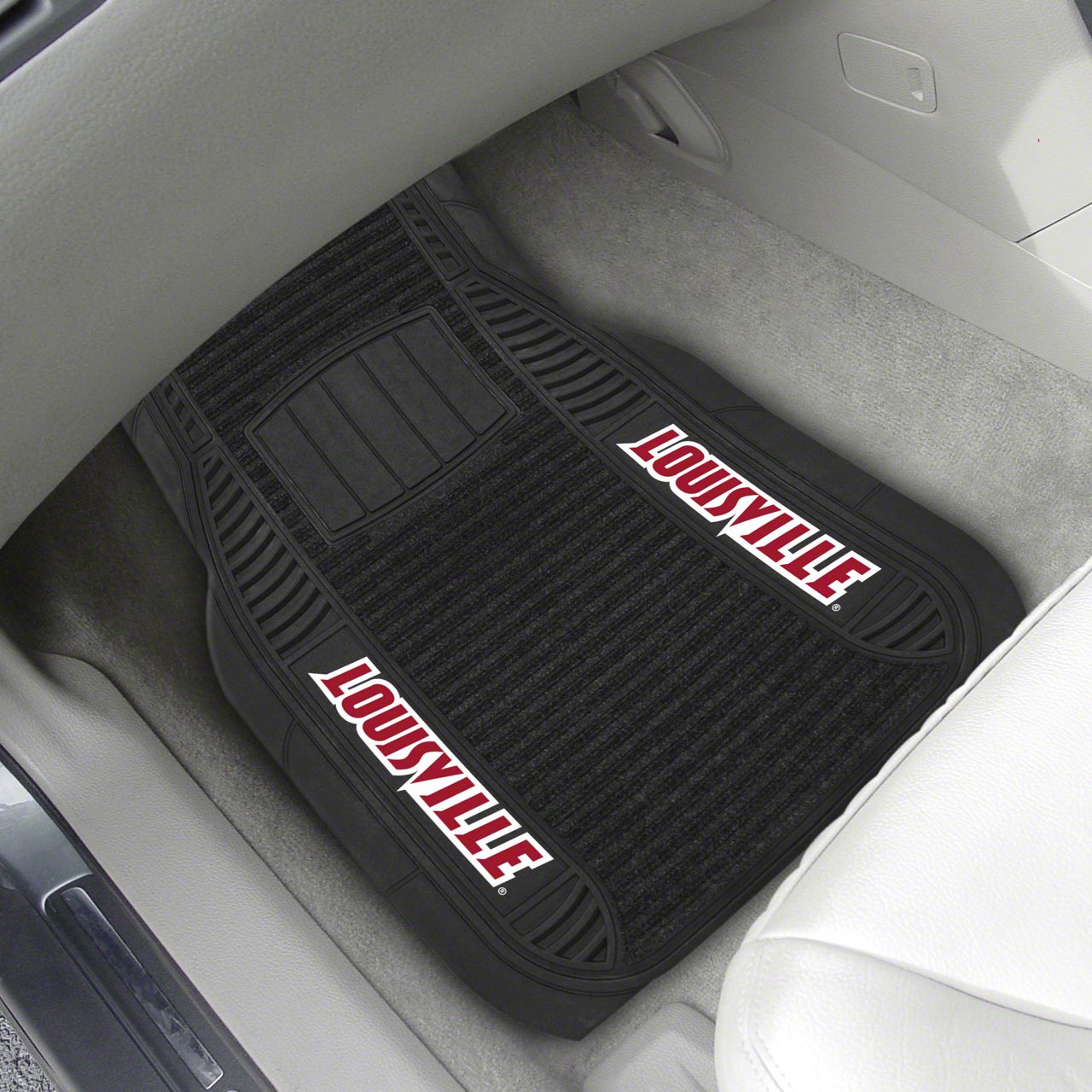Description. Front Car Mats; 2-Pc Deluxe Car Mat Set; University Of Louisville; 21"X27"