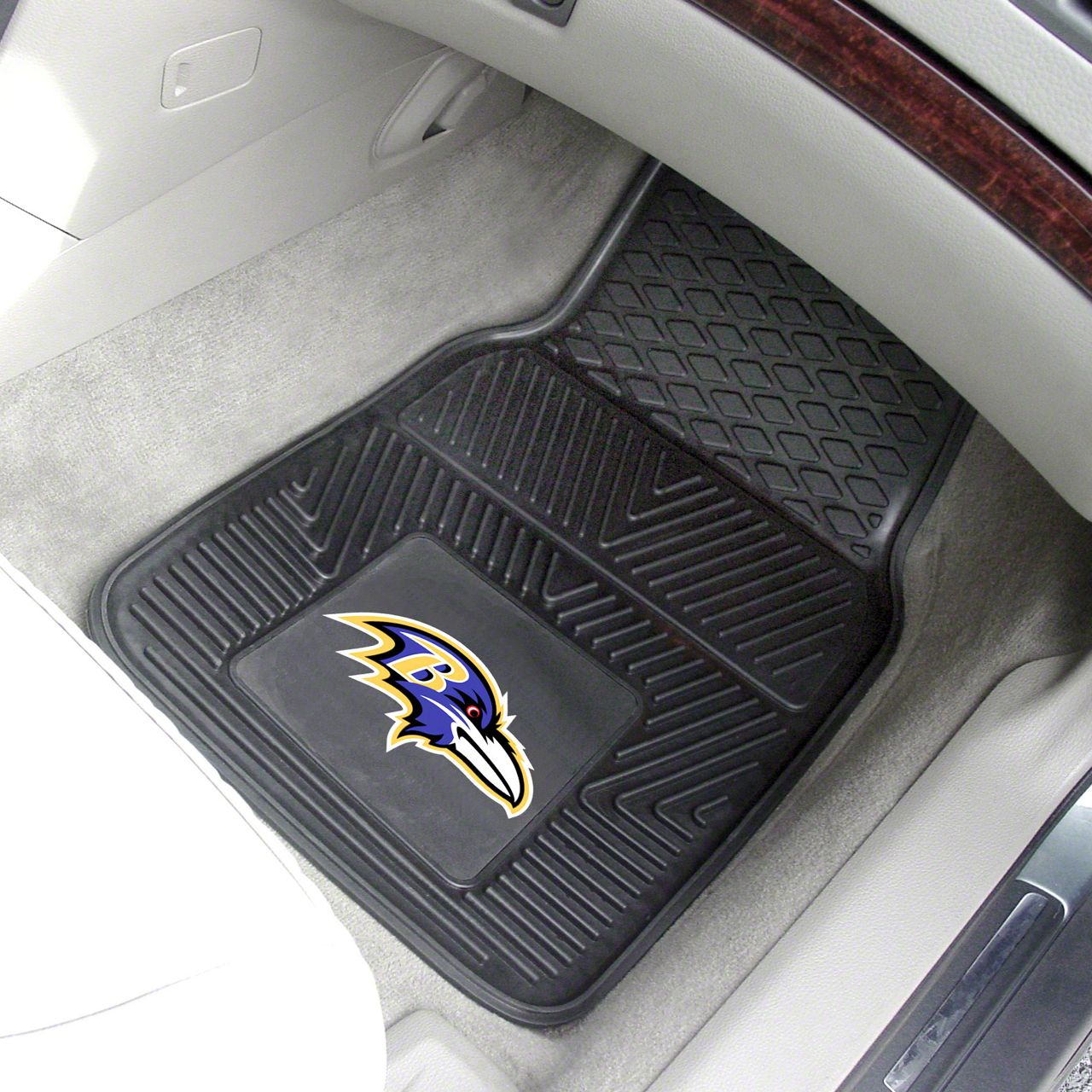 Description. Front Car Mats; 2-Pc Vinyl Car Mat Set; Nfl; Baltimore Ravens; 17"X27"