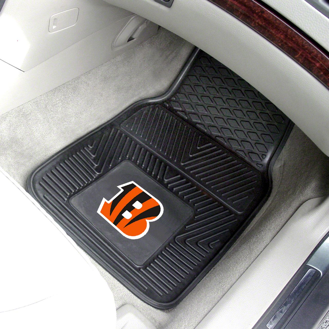 Description. Front Car Mats; 2-Pc Vinyl Car Mat Set; Nfl; Cincinnati Bengals; 17"X27"