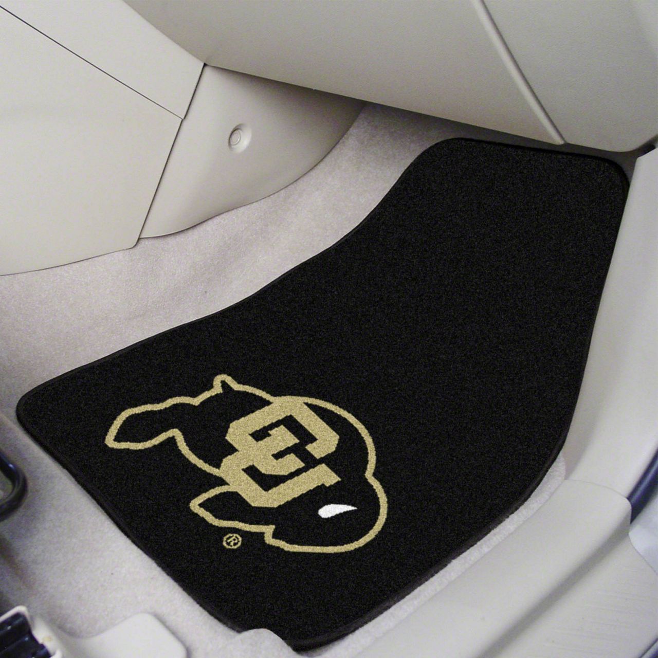 Description. Front Car Mats; 2-Pc Carpet Car Mat Set; University Of Colorado; 17"X27"