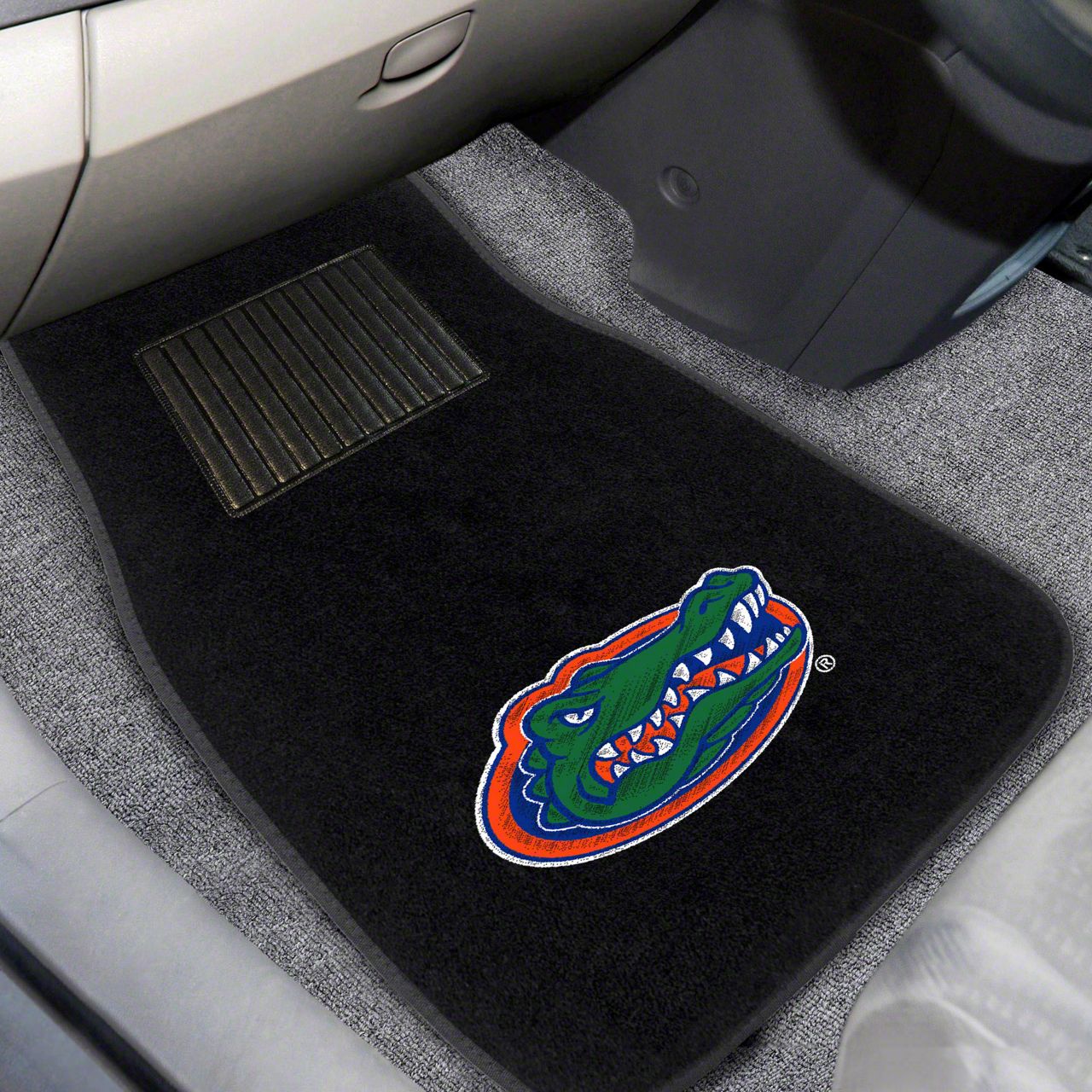 Description. Front Car Mats; 2-Pc Embroidered Car Mat Set; University Of Florida; 17"X25.5"